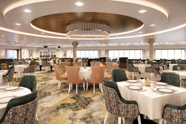 - Staterooms and Suites: Updated with soft decorative bedding, refined furnishings, plush carpets, and luxurious fabrics in a light, ocean-inspired color palette