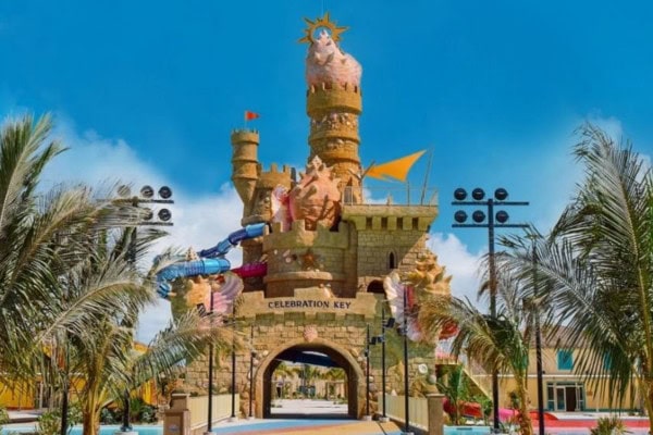 At the heart of Celebration Key stands the Suncastle, a 10-story landmark topped with massive conch shells. This is the focal point of the destination and features two water slides, each over 350 feet long.