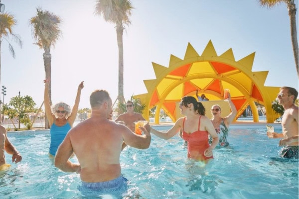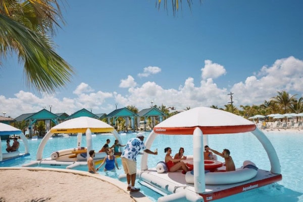 - AquaBanas are sturdy floating cabanas in Starfish Lagoon that seat up to eight people. These can be reserved and provide a shaded, floating spot to relax with your feet in the water.