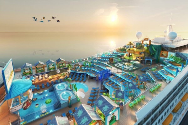 Anchoring the upper decks, this massive 50-foot-tall venue will be the new hot spot onboard. Imagine poolside cocktails, live island music, and incredible ocean views, all in one vibrant, open-air space. It’s designed to be a hangout by day, a pre-dinner drink stop in the evening, and a celebration spot at any hour.