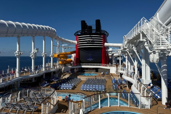 Disney Destiny has a fantastic main pool deck with several pools and a giant screen that plays Disney classics throughout the day. It creates a fun, upbeat atmosphere that families will love.