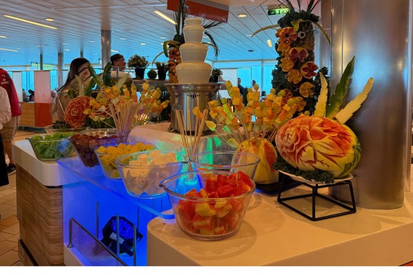 The buffet stays open from early morning until late evening on most ships. Whether you’re craving breakfast at noon or a snack at midnight, you’ll find hot and cold options waiting for you. The variety changes throughout the day to keep things interesting.